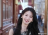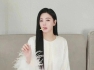 她穿着一件紫色的毛衣,尽显身材,不得不说穿这样亮丽的颜色真的是格外的亮眼,脸上化着精致的妆容,正在桌子上面写着书法。